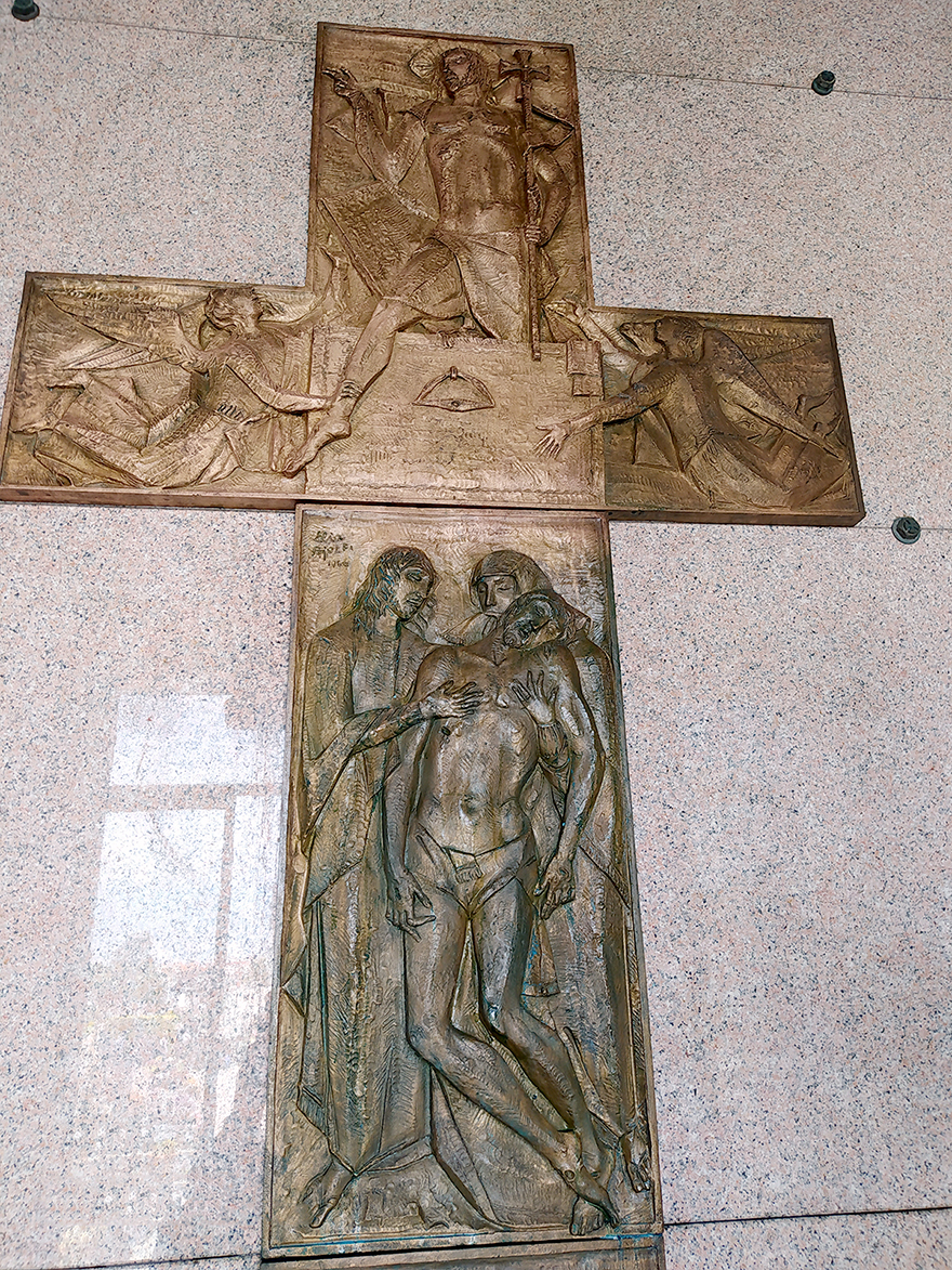 croce in bronzo di Elia Ajolfi durante il restauro di ornella pobiati